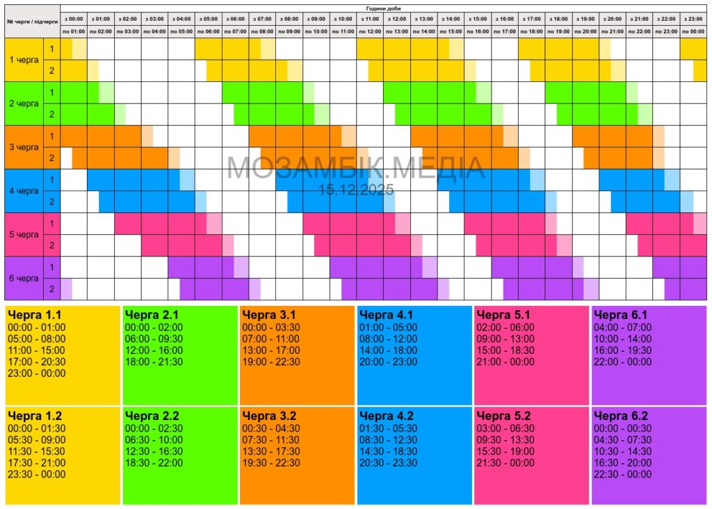 Графік відключень світла в Полтаві 15 грудня