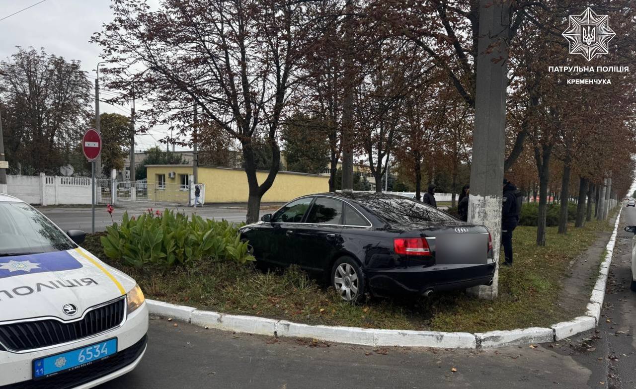 П’яний водій Audi зіткнувся зі стовпом у Кременчуці