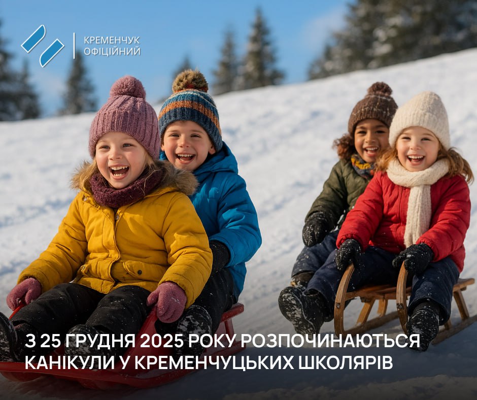 Зимові канікули для учнів шкіл Кременчука почнуться з 25 грудня цього року та триватимуть до 11 січня включно. Після завершення святкового періоду, 12 січня школярі повернуться до навчального процесу.